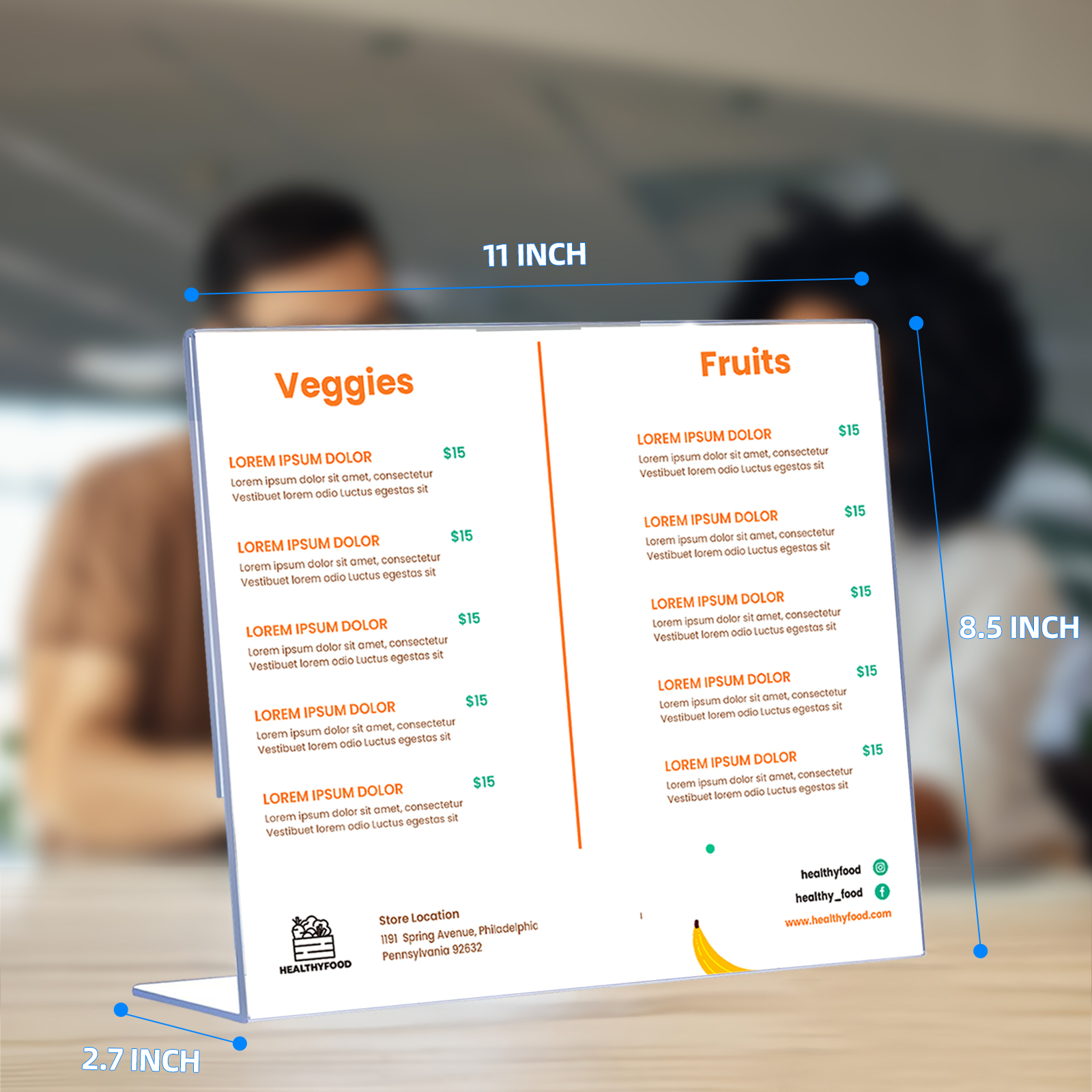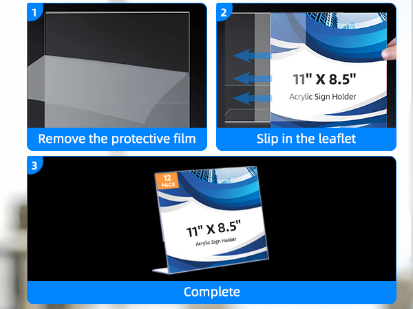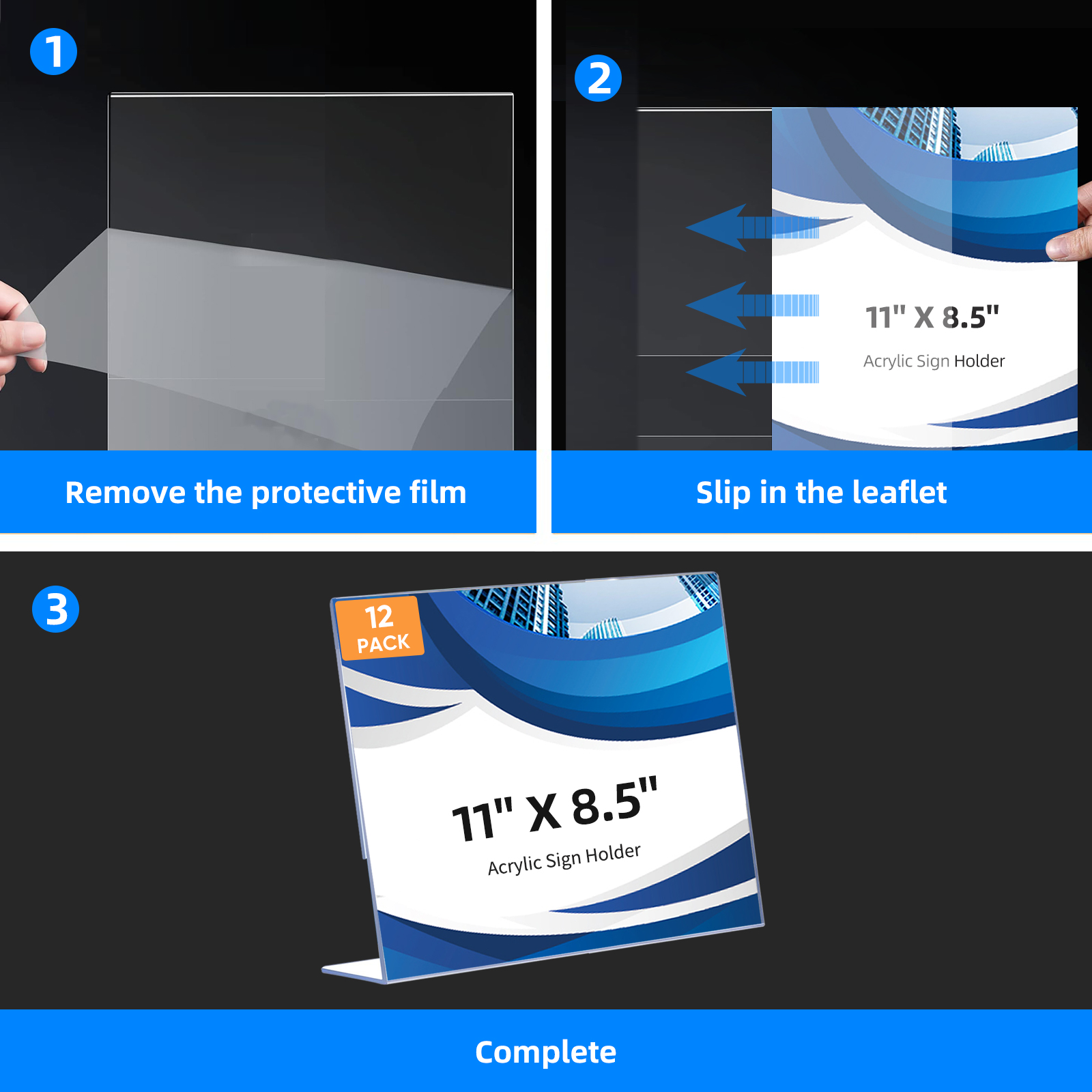 1. Acrylic Sign Holder 11 x 8.5 Premium Clarity & Durability: Crafted from crystal-clear acrylic sheets, these 8.5x11 acrylic sign holders ensure scratch-resistant, long-lasting visibility for signs, flyers, or documents.