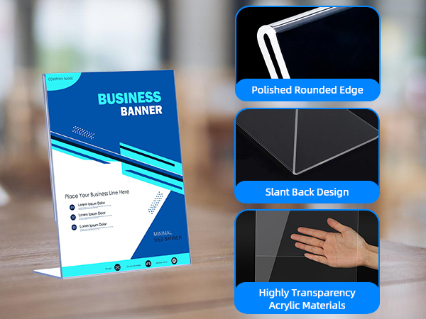 1. Premium Quality Acrylic Sign Holder 5 x 7'': Our 5x7 acrylic sign holder is made from crystal clear acrylic sheets for exceptional clarity and durability, providing pristine visibility for your signage.