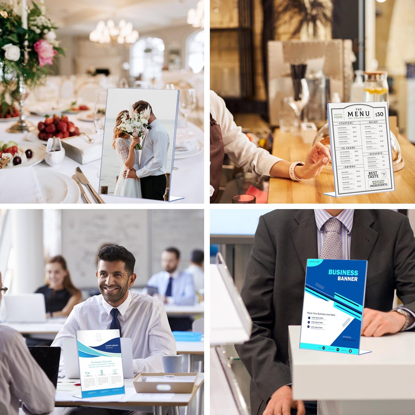4. Versatile Applications: Fits standard 5" x 7" size signs, suitable for a wide range of settings including restaurants, coffee shops, bars, stores, hospitals, and schools. Easily insert and change signage with the side opening, providing hassle-free customization.