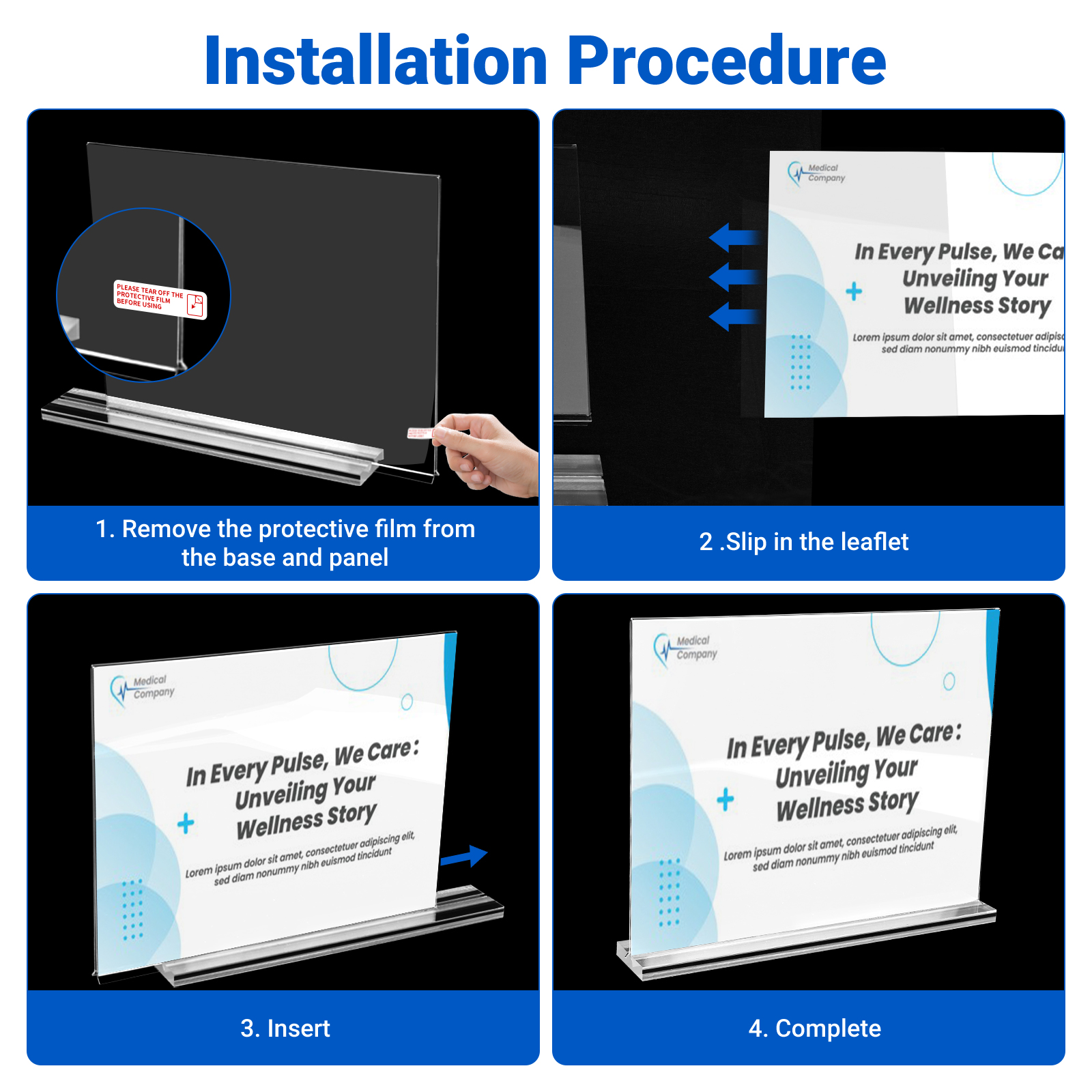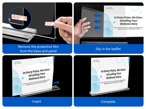 2. Protective Film for Scratch-Free Surface: Each sign holder comes with a protective film on both sides to safeguard against scratches during transportation and handling. Before use, remember to remove the protective film on both sides for a scratch-free surface.