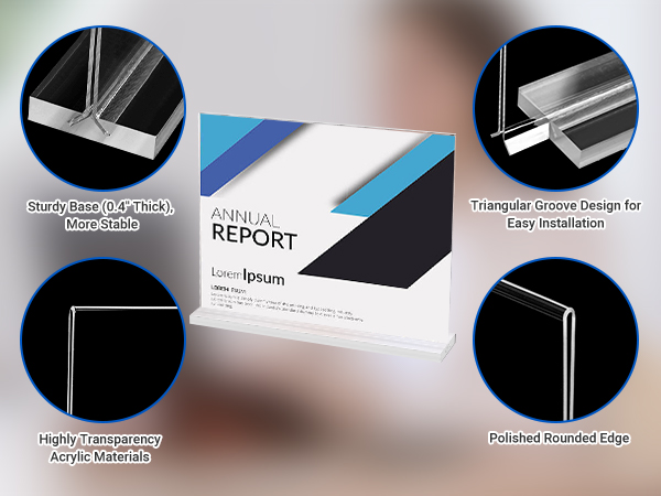 3. Sturdy Base (0.4'' Thick), More Stable: T Shape design and sturdy base for stable self-standing display, without worrying about easy to tip over, ideal for showcasing images, announcements, or advertising pamphlets.